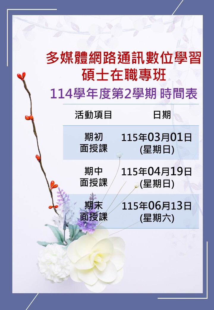 114學年度第二學期 期末面授 課程時間表